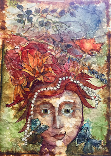 This workshop was called "Featured Adornments"....Masa paper watercolor painting, drawing lesson on face proportions, value, and colors. And not to mention a wild, wonderful big hair do with an attitude!